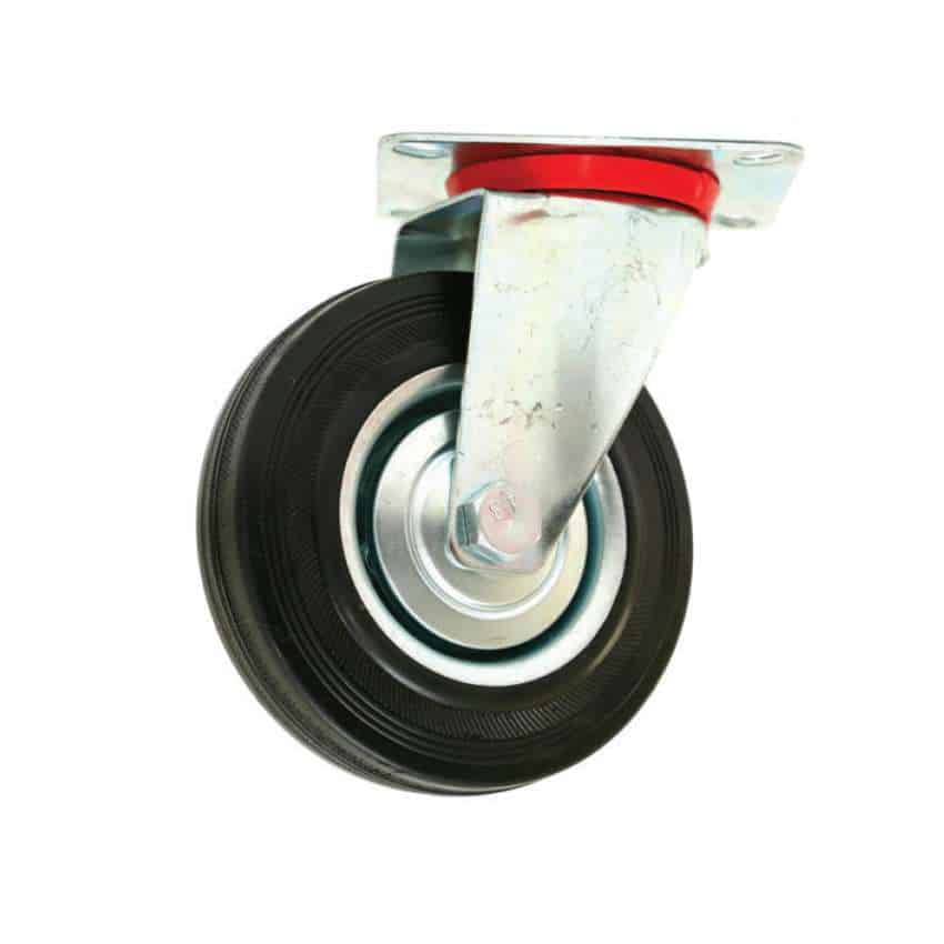 גלגל תעשייתי שחור 5” – מידת פלטה8.2*10 גובה גלגל עד הפלטה 15.2ס”מ